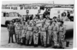 Donald Campbell and the Bluebird team, Goodwood, 22nd July 1960. Donald Campbell is in the centre holding 'Mr Whoppit', with his arm round Leo Villa. They are grouped around the 'Bluebird' car. The photograph was taken during the car's first test run. He claimed the land speed record on 17th July 1964 at Lake Eyre, Australia. Leo Villa was an engineer involved with both Donald, and his father Malcolm Campbell, on all their Bluebird record attempts. Whenever Campbell tried for a record, his mascot Mr Whoppit went with him. Campbell is the first and thus far only person to hold both Water and Land Speed Records. He died on 4th January 1967 on Coniston Water, Cumbria, whilst attempting to beat his own world record of 276 mph at a speed close to 320 mph on his return run. No trace was ever found of Campbell. Mr Whoppit floated to the surface and is now the mascot of Campbell's daughter Gina who continues the record breaking tradition.