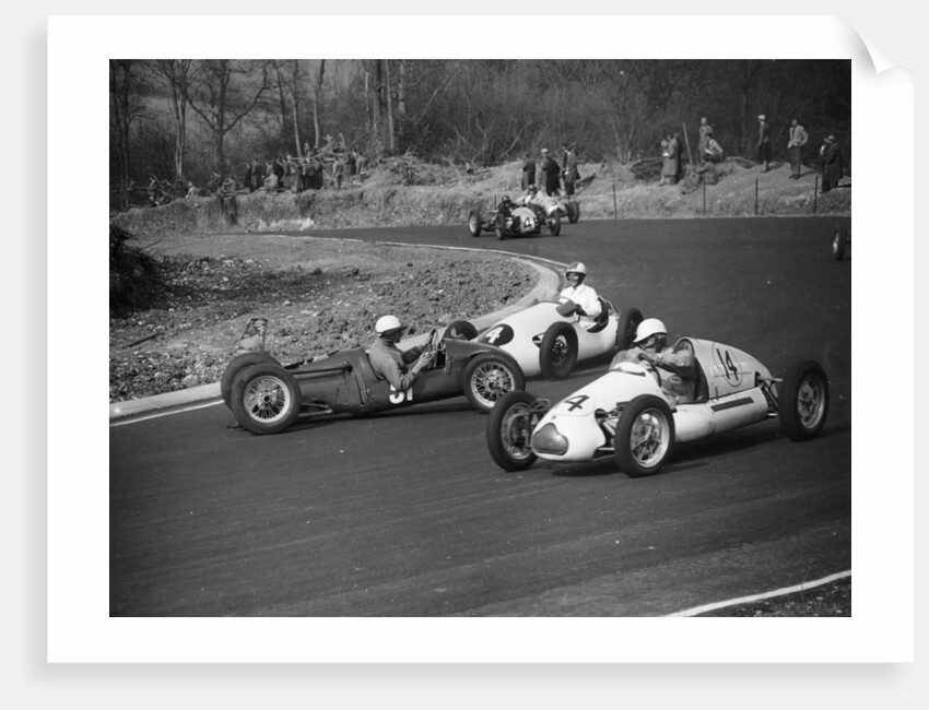 Druids Hairpin, Brands Hatch, Kent, 1954. Formula Three 500cc cars racing round the new bend at Brands Hatch, named Druids Hairpin.