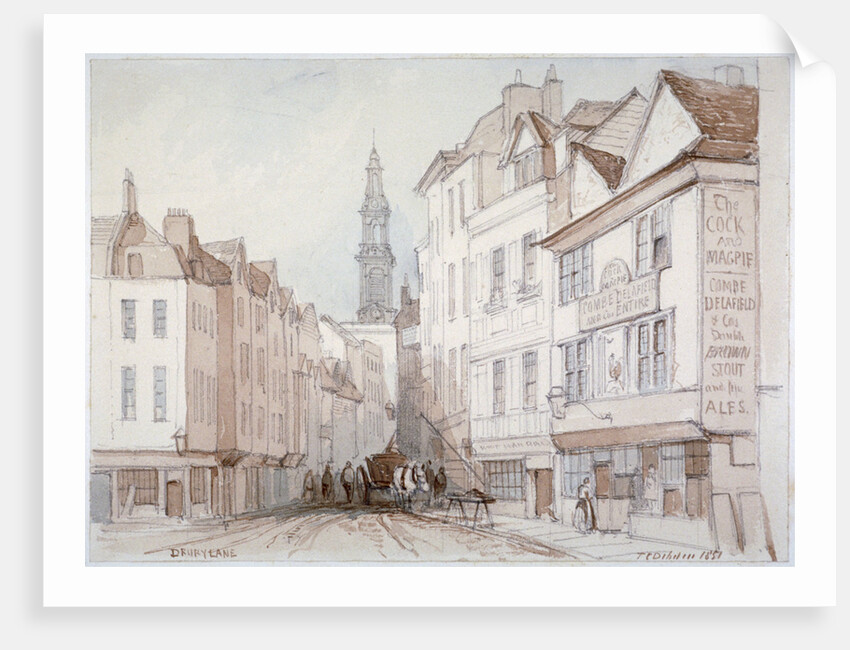 Drury Lane, Westminster, London, 1851. View looking south and showing the Cock and Magpie Tavern.