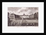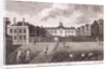 Dulwich College, Camberwell, London, London, 1790; view of Dulwich College with figures and sheep in the foreground. In the middle distance a pair of figures play with a bat and ball.