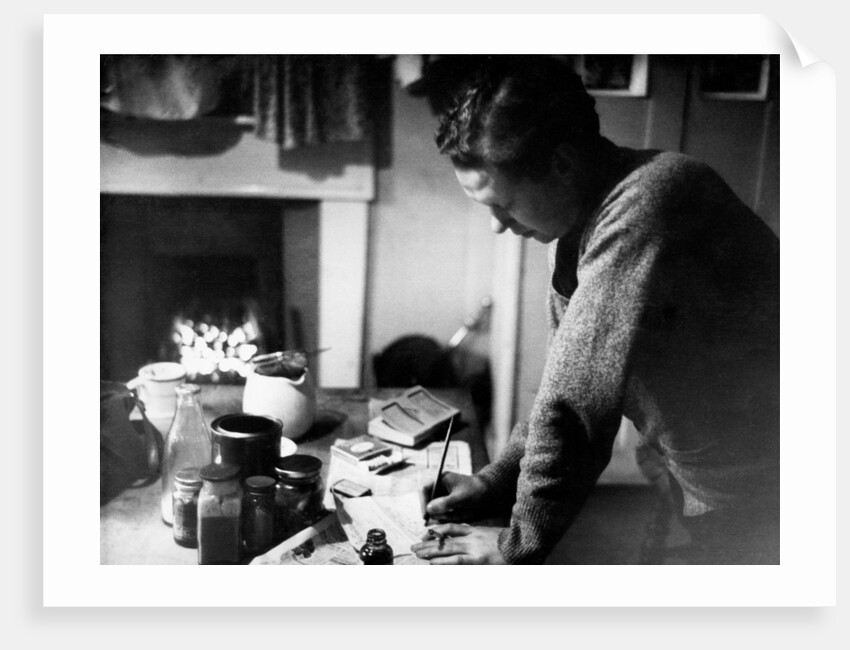 Poet Dylan Thomas pictured at his flat in Chelsea, London, 1945.