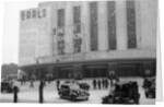 Earls Court Motor Exhibition, 1937. The Warwick Road facade of Earls Court exhibition centre advertising exhibits of cars, boats and caravans. This was the first motor show to be held at Earls Court.