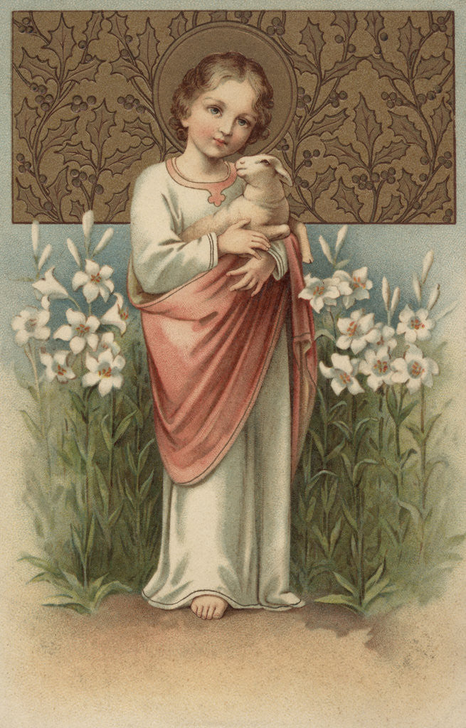 Easter Postcard with Young Jesus Christ Holding Lamb