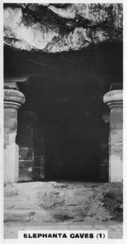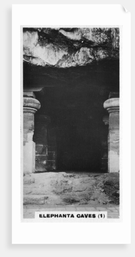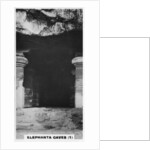 Elephanta Caves, Bombay, India, c1925. The 8th-century Hindu temple caves near Mumbai were carved out of the rock. Cigarette card produced by the Westminster Tobacco Co Ltd, Indian Empire, 1st series.