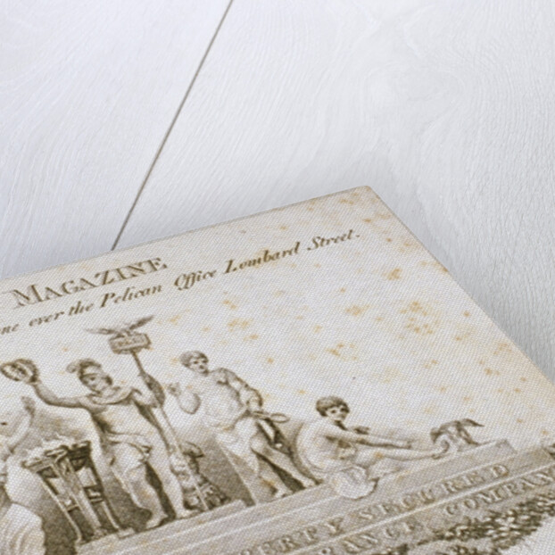 Emblematical figures in artificial stone over the Pelican Life Office, no 70 Lombard Street, City of London, 1801.