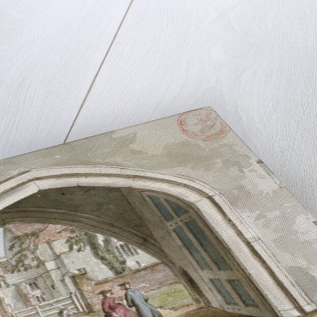 Entrance to Croydon Palace, Croydon, Surrey, c1800. Croydon is now in the London borough of Croydon. A man can be seen begging from two figures. Croydon Palace used to be the summer residence of the Archbishop of Canterbury. By the 18th century the palace with its 15th century Great Hall had fallen into disrepair, and it was sold in 1807.