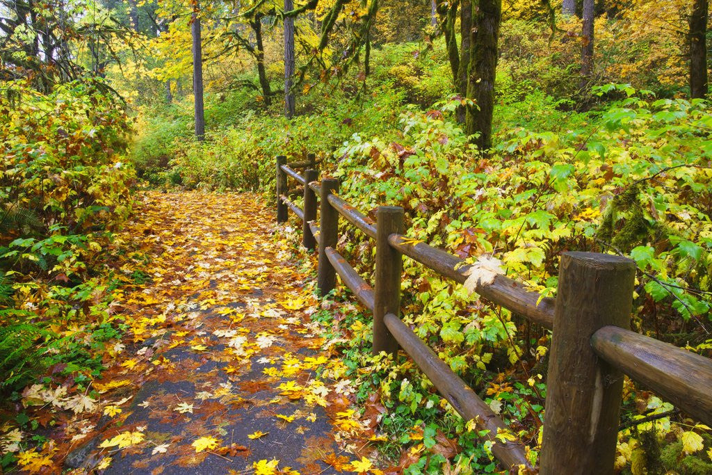 fall colors add beauty trail, Silver Falls State Park, Oregon, Pacific Northwest, United States