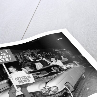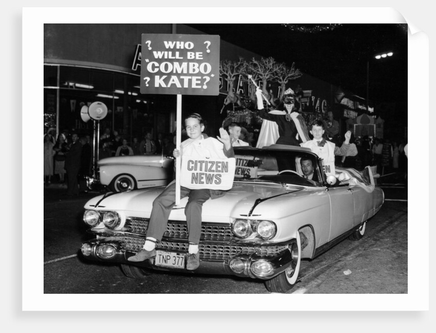 Fancy dress parade with a 1957 Cadillac, USA, (c1957?).