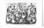 'Female School of Art', 1874. An elegant young man with time on his hands poses for a roomful of young women in a straight reversal of the usual roles. Punch regularly poked fun at women, particularly at their fashions, their pastimes and their education. In this cartoon, as is usual, the women are depicted as terribly serious about their work. From Punch, or the London Charivari, May 30, 1874.
