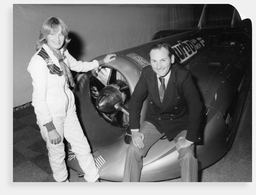 Fiona Brothers and Richard Noble, 1980s. Pictured with the car Thrust 2. Fiona Brothers set the women's propeller boat speed record of 116.279 mph in September 1981. Richard Noble was the holder of the world land speed record (WLSR) in 1983 with the car Thrust 2, with a speed of 633.468 mph. In 1997, the result of Noble's next project, Thrust SSC, was driven by RAF pilot Andy Green to set a new record of 763.035 mph, breaking the sound barrier in the process.