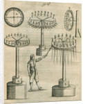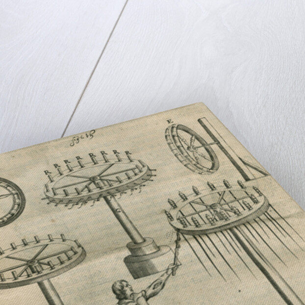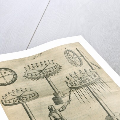 The manner of making a fixed wheele which shall cast forth many rockets into the ayre' and 'The manner of making a wheele which shall runne two waies'. Figure 6 from the book Pyrotechnia; or, A discourse of artificiall fire-works, by John Babington, (London, 1635).