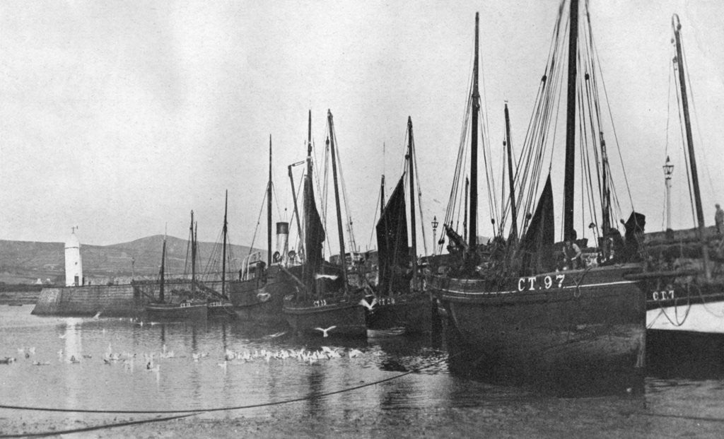 Fishing boats in Port St Mary harbour, Isle of Man, 1924-1926. A print from Hutchinson's Britain Beautiful, edited by Walter Hutchinson, volume II, 1924-1926.