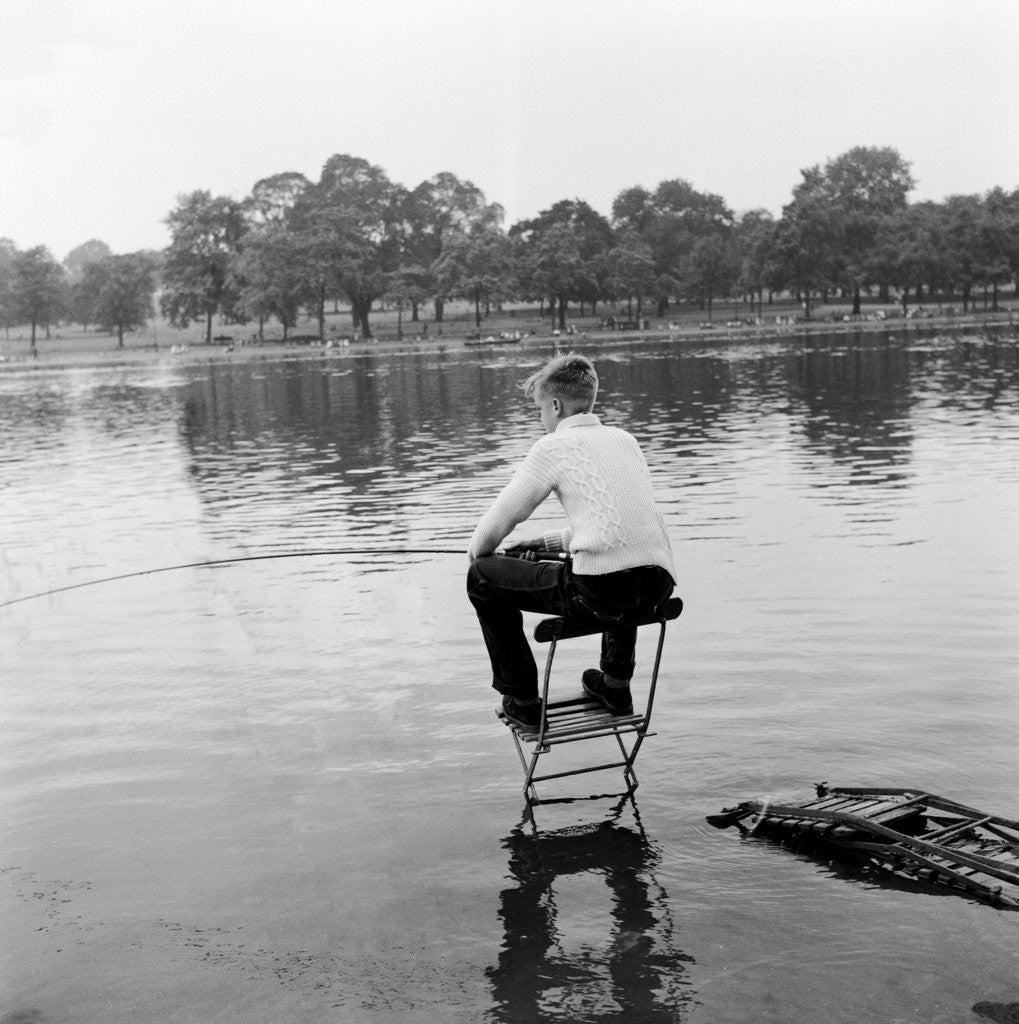 Fishing on the Serpentine in London's Hyde Park. 8th August 1957.