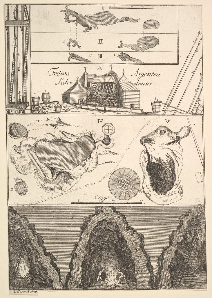 Fodina argentea Sahlensis - A Silver Mine at Sala - I (from Aubry de La Mottraye's "Travels throughout Europe, Asia and into Part of Africa...," London, 1724, vol. II, pl. 33, no. 1), 1723-24.