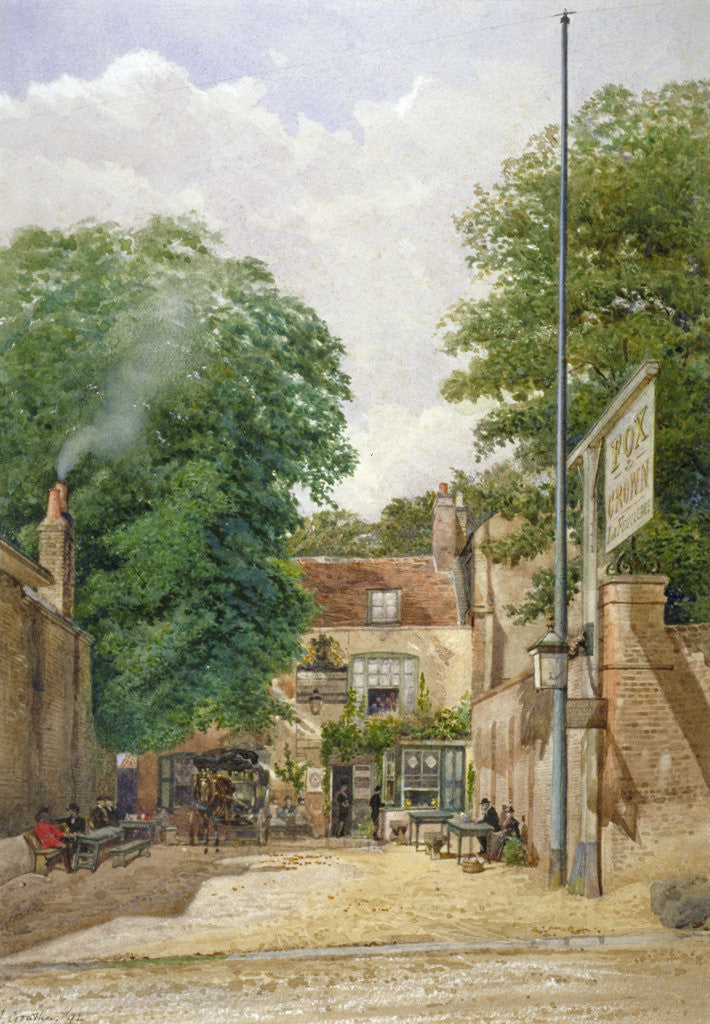 Fox and Crown Public House, Highgate, London, 1892. View with figures seated drinking outside the pub.