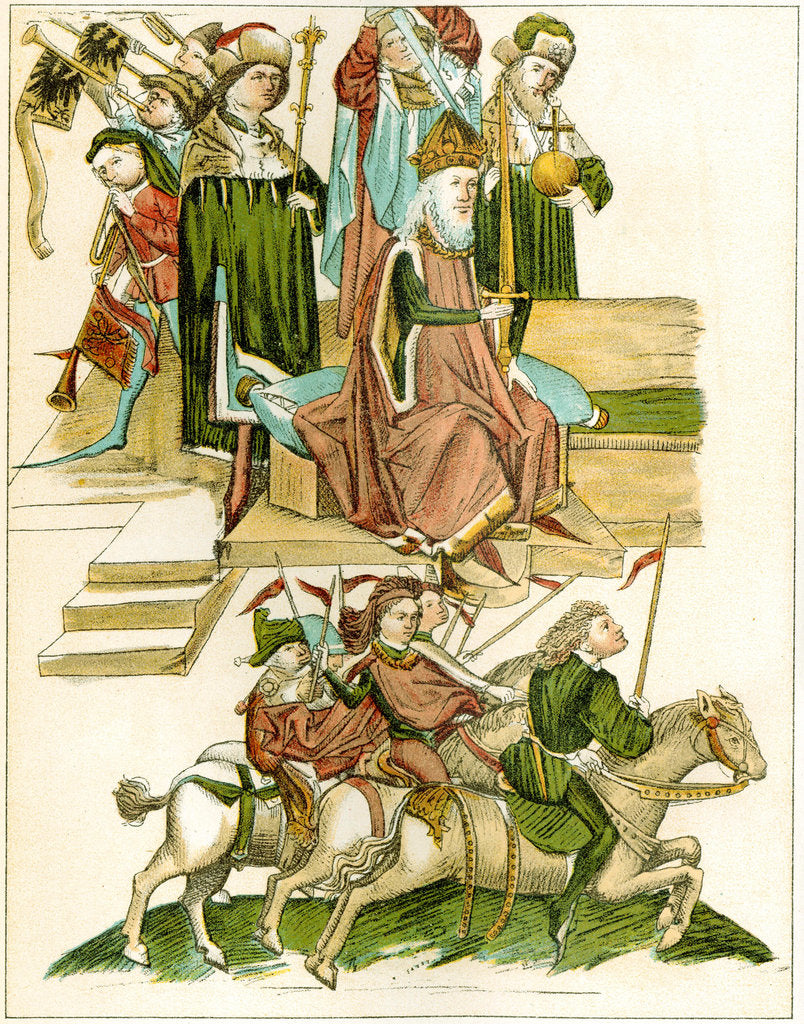 Frederick I receives Brandenburg, 15th century. Copy of an Illustration from the Richental's illustrated chronicle. Private Collection.