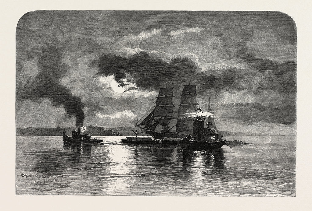 French Canadian Life, Light-Ship on the St. Lawrence, Canada, Nineteenth Century Engraving