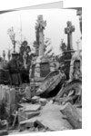 French graves smashed by German shell fire, France, World War I, 1914-1918. Stereoscopic card detail.