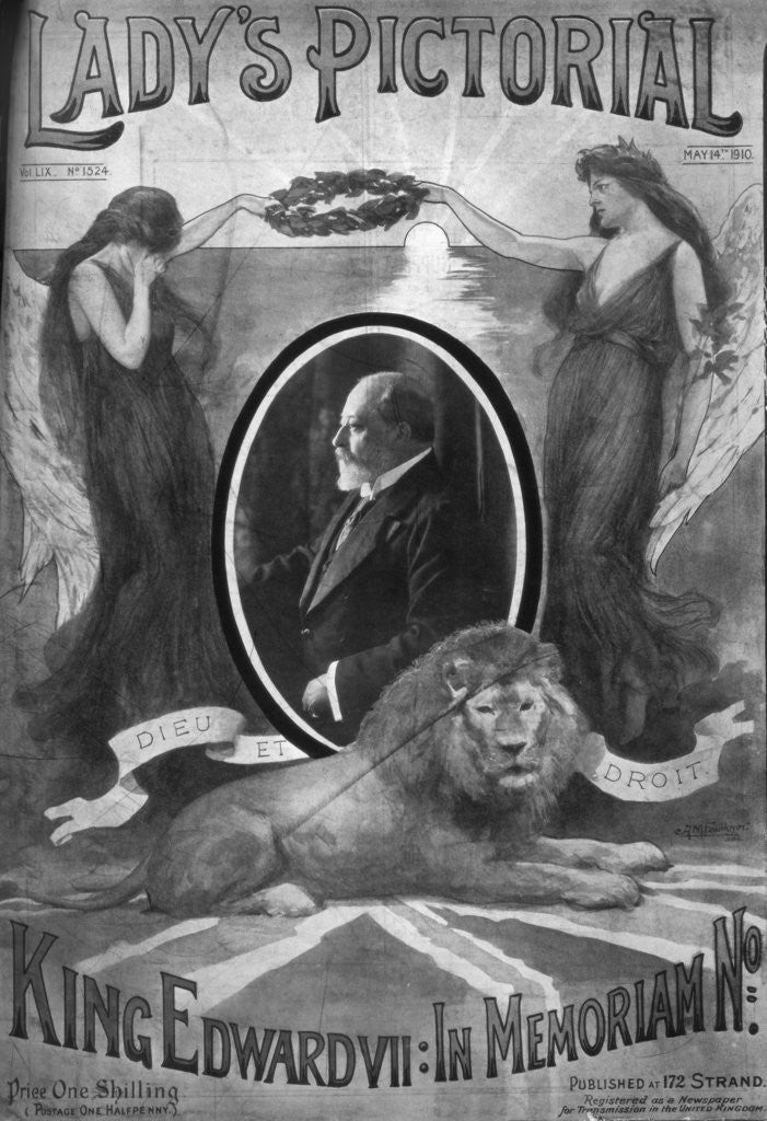 Front cover of Lady's Pictorial, 14th May 1910. In memoriam of King Edward VII, who died on 6th May 1910. A print from Lady's Pictorial, 14th May 1910.