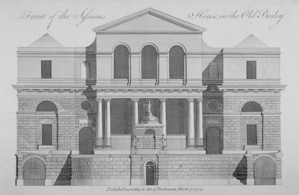 Front view of the Sessions House, Old Bailey, City of London, 1772.