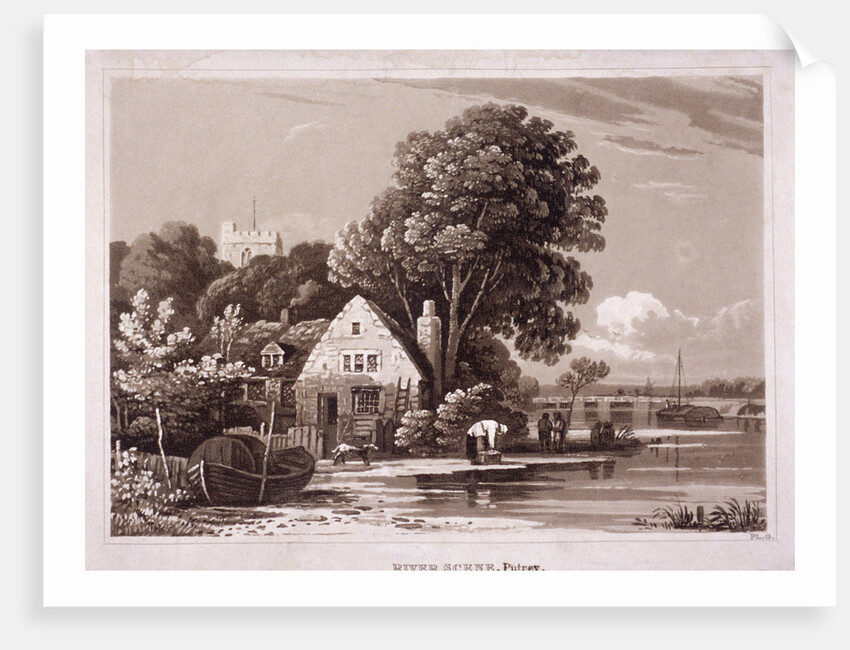 Fulham, London, c1820; view of the River Thames and the banks at Fulham.
