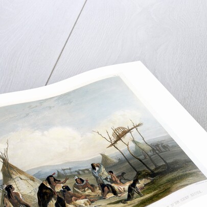 'Funeral Scaffold of a Sioux Chief near Fort Pierre', 1843. Plate 11 from Volume 2 of Travels in the Interior of North America, 1843.