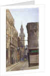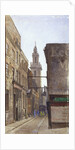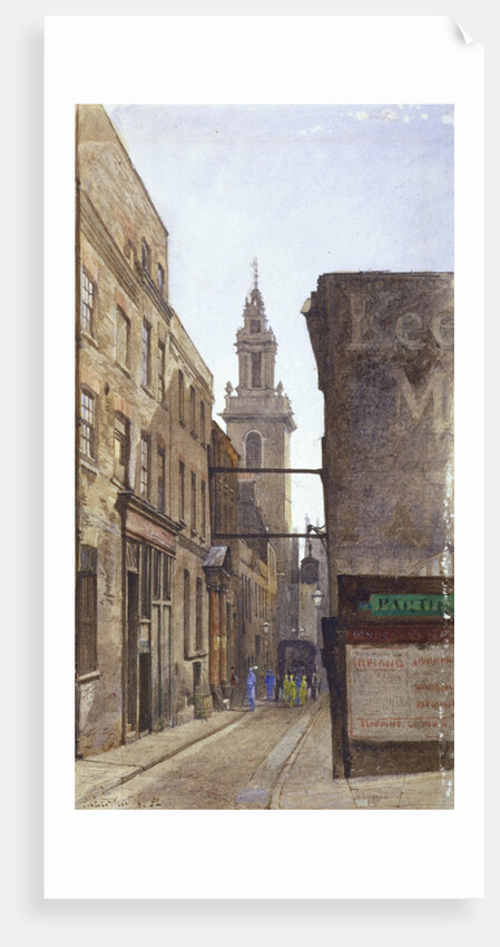 Garlick Hill, City of London, 1882. View of Garlick Hill looking towards Upper Thames Street, with the tower of St James Garlickhythe in the distance.
