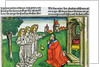 Genesis 18:2: Abraham and the three angels. Facsimile copy of a 15th century manuscript of the German School.