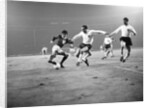 George Best in action for Northern Ireland during the Home International match against England at Wembley watched by England defenders George Cohen (centre) and Jack Charlton. 10th November 1965.