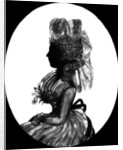Georgiana, Duchess of Devonshire, (1912). Painted on paper. Georgiana Cavendish (1757-1806) was famous for her beauty, her political campaigning, gambling, and unorthodox domestic arrangements. Her best friend was also her husband's mistress, and Georgiana tolerated a menage a trois for many years. She herself bore a child out of wedlock. A print from One Hundred Silhouette Portraits, Horace Hart, at the University of Oxford Press, 1912.