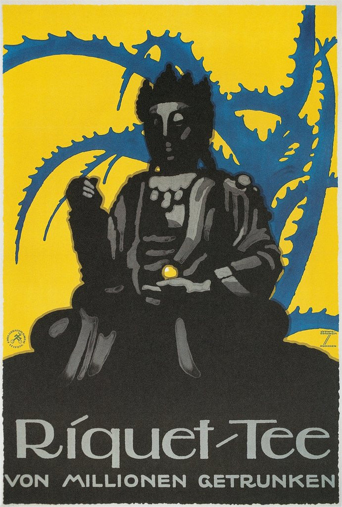 German Advertisement for Riquet Tea, Buddha and Thorn Bush