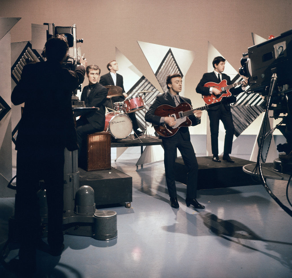 Liverpudlian group Gerry and the Pacemakers, led by Gerry Marsden, record the television show "Thank Your Lucky Stars" at the ABC Studios in Birmingham. 29th March 1964.