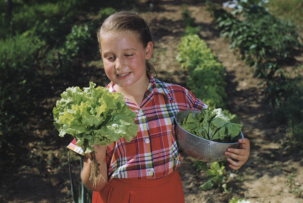 Product images of Girl Holding Head of Lettuce in Garden