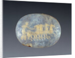 Glass gem with gold foil ornament; Unknown; South Italy (?), Europe; 4th century B.C.; Glass with gold inlay; ceramic center