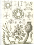 Illustration shows glass sponges. Hexactinellae. - Glasschwämme, 1 print : lithograph ; sheet 36 x 26 cm., 1904. Ernst Haeckel 1834 – 1919 German biologist, naturalist, philosopher, physician, professor, and artist who discovered, described and named thousands of new species, mapped a genealogical tree relating all life forms, and coined many terms in biology, including anthropogeny, ecology, phylum, phylogeny, stem cell, and Protista.