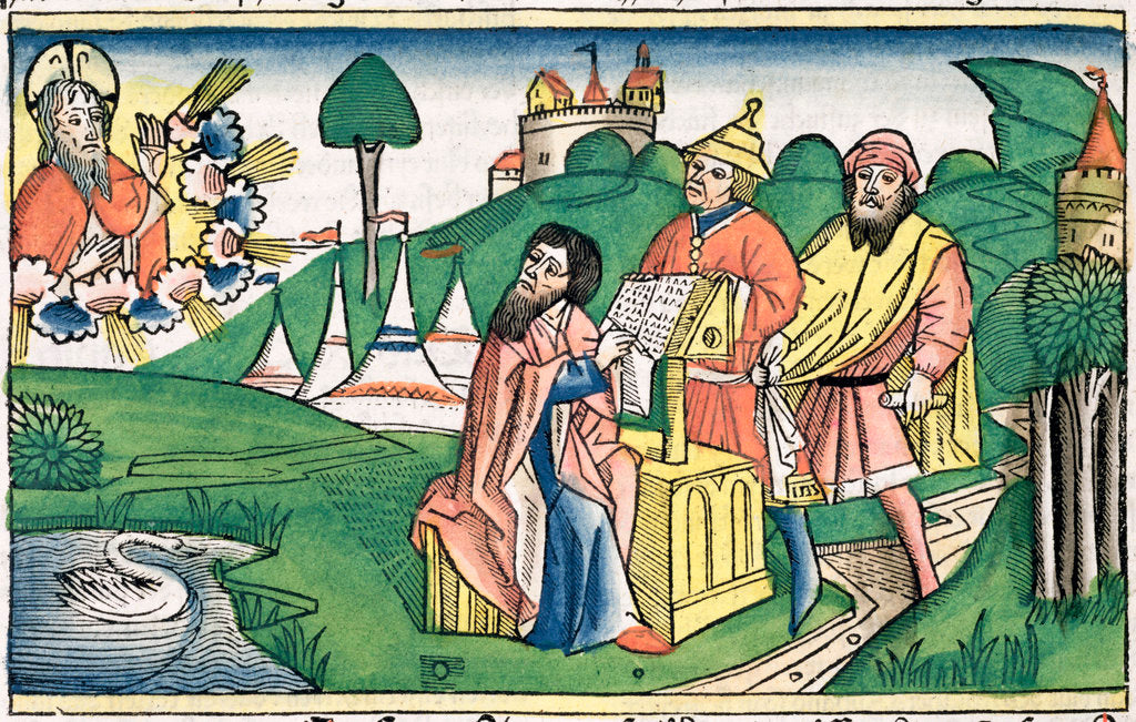 God making the Laws. Scene from Deuteronomy. Facsimile copy of a 15th century manuscript of the German School.