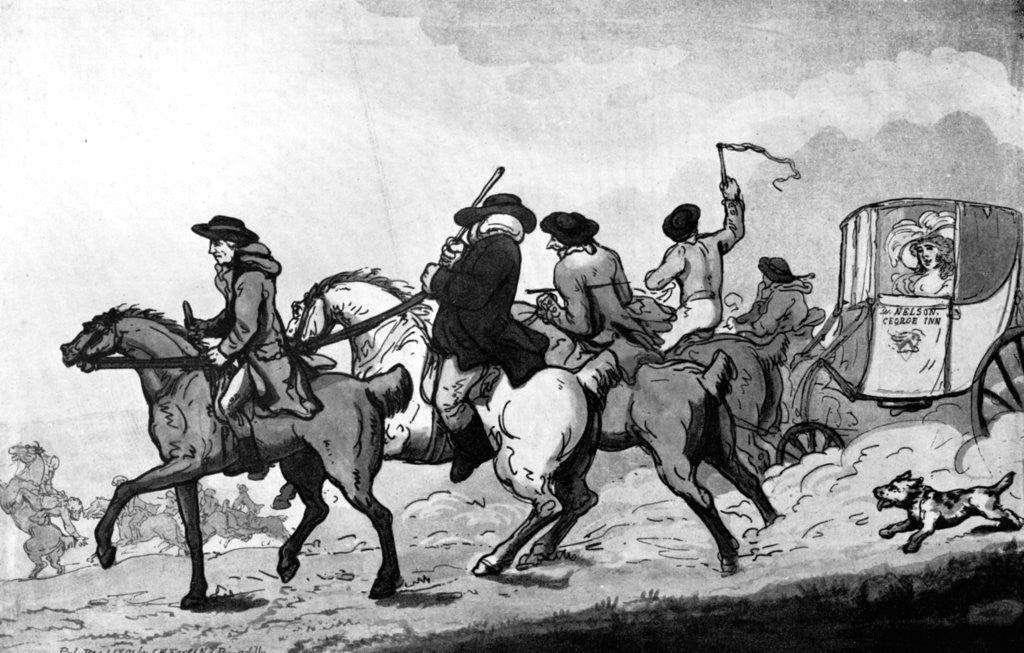 'Going to the races', late 18th century. Illustration from Social Caricature in the Eighteenth Century ... With over two hundred illustrations by George Paston [pseudonym of Emily Morse Symonds], (London, 1905).
