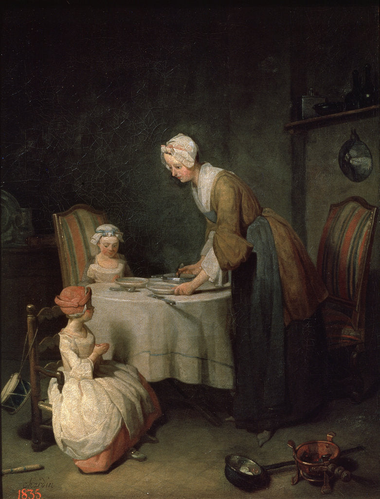 'Grace Before Dinner (Le Bénédicité)', 1744. Chardin, Jean-Baptiste Siméon (1699-1779). Found in the collection of the State Hermitage, St. Petersburg.