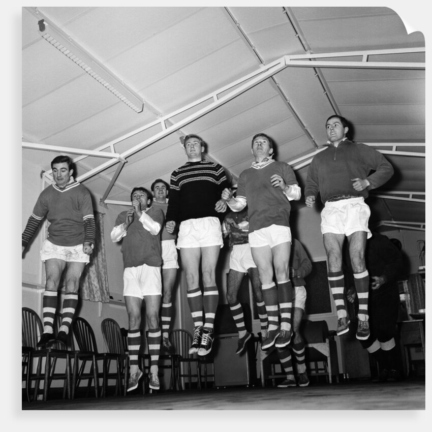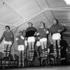 Footballer players of non league Gravesend and Northfleet pictured during a training session ahead of their FA Cup third round match at Carlisle United. Left to right are: Norman Golding, Bobby Cameron, Ernie Walley, Brian Sitford, Tommy Williams and Harry Easton. 31st December 1962.
