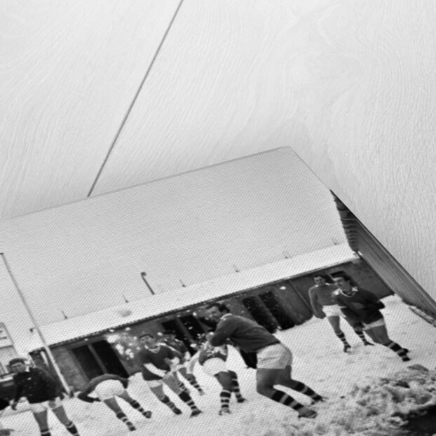 Footballer players of non league Gravesend and Northfleet pictured having a snowball fight during a training session ahead of their FA Cup third round match at Carlisle United. Tommy Williams (centre) and Bobby McNicol (right) are amongst the players in this picture. 31st December 1962.
