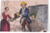'Green and Young Hastings'. View of a pea seller emptying a basket of peas from his cart into a bag held by a lady. From Cries of London, c1840.