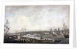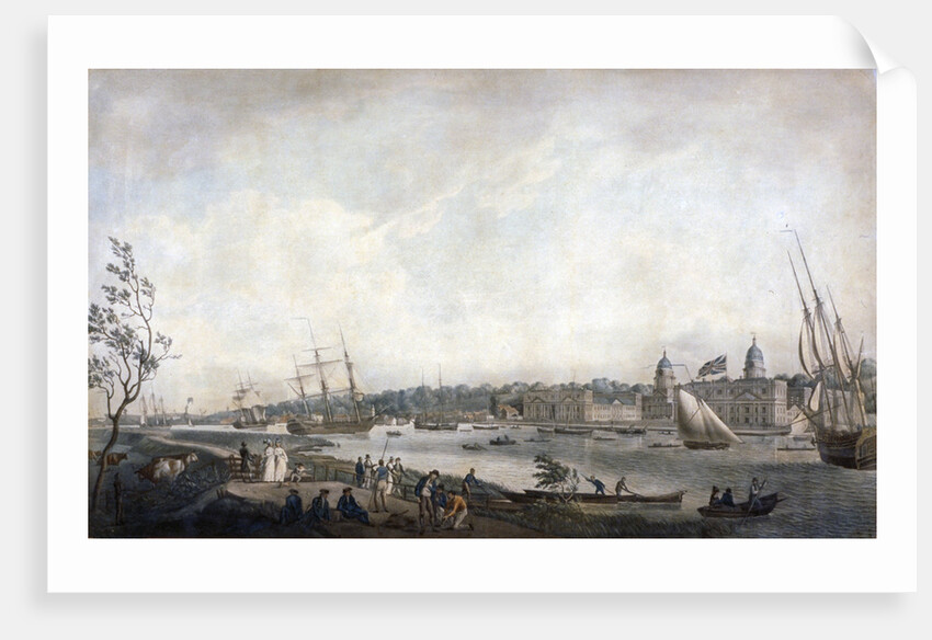 Greenwich Hospital from the Isle of Dogs, London, c1792. View with figures and cattle in the foreground and ships and boats on the River Thames.