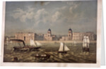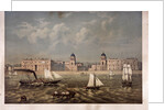 Greenwich Hospital, Greenwich, London from the River Thames, c1850; showing a paddle steamer and other boats.