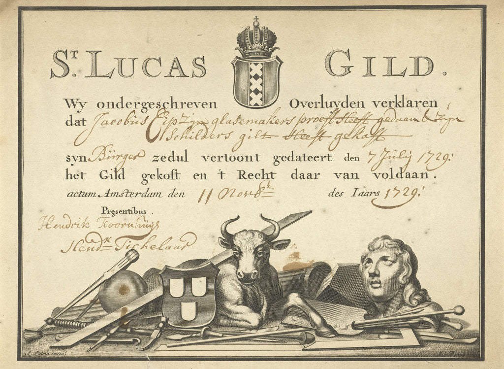 Guild Letter of the Guild of St. Luke in Amsterdam, The Netherlands, Johannes de Broen, c. 1700 - c. 1729