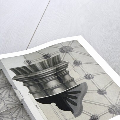 Guildhall Crypt, City of London, 1820. Details of capitals, bosses and springing of the vaulting ribs in the Guildhall Crypt.