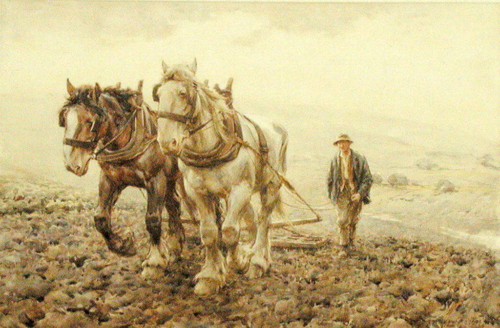 Harrowing on the South Downs near Willmington, Sussex,
