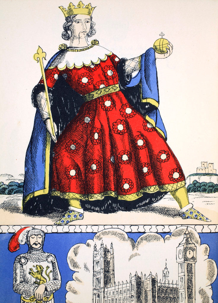 Henry III, King of England from 1216, (1932). Henry (1207-1272) is one of the least-known British monarchs, considering the great length of his reign. He was also the first child monarch in English royal history since the Norman Conquest. Much of Henry's reign was spent in dispute with the barons over the provisions of the Magna Carta. From Kings and Queens by Eleanor and Herbert Farjeon, 1932.