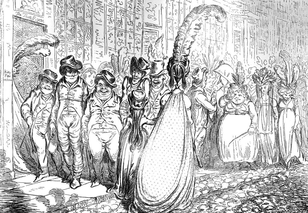 'High Change in Bond Street - ou - la Politesse du Grand Monde', 1796. Illustration from Social Caricature in the Eighteenth Century ... With over two hundred illustrations by George Paston [pseudonym of Emily Morse Symonds], (London, 1905).