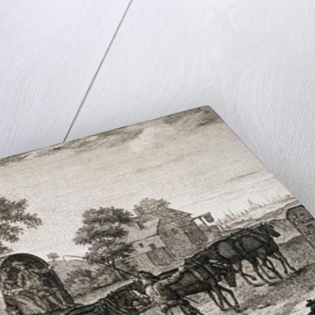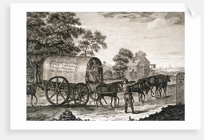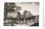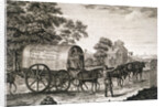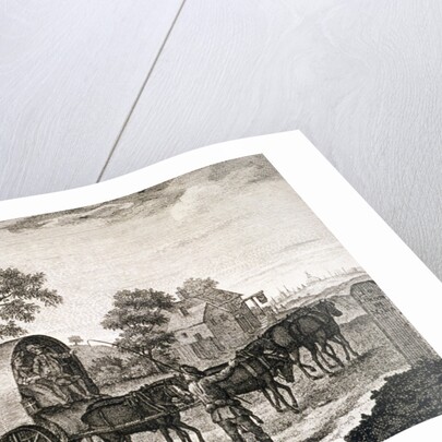Holloway, Islington, London, c1800; view of the York Common Stage Waggon with the Half Moon Tavern in the middle distance and London on the horizon.
