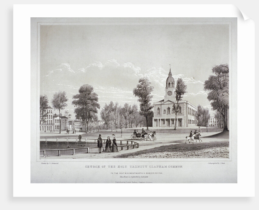 Holy Trinity Church, Clapham, London, c1850. View with figures, horses and carriages.